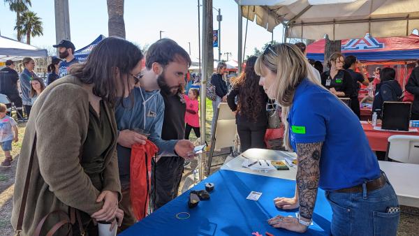 A steady stream of attendees visited PSI’s exhibit at Family SCIFest. Credit: Sanlyn Buxner.