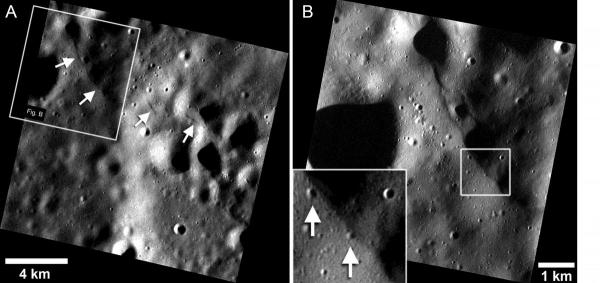 “These small-scale thrust fault scarps are orders of magnitude smaller, only a few kilometers in length and tens of meters of relief, than larger scarps previously known to exist on the surface of Mercury,” said Banks, who analyzed MESSENGER images to find and analyze these small-scale tectonic structures. “Steady meteoroid bombardment quickly degrades and destroys structures this small, indicating that they must have formed relatively recently. They are comparable in size to very young fault scarps identified on the lunar surface attributed to shrinking of the Moon.”