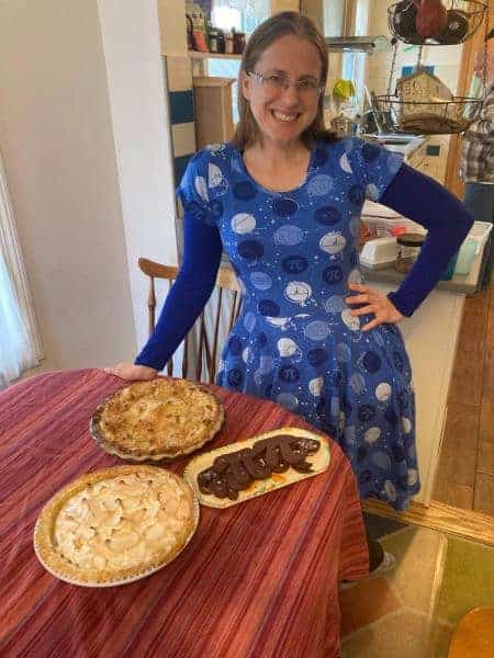 “We are really leaning into this best-of-all holidays. We got some chocolate roll-cookies to make in the shape of the letter pi, for delivery to friends, and then there is also apple and lemon meringue pie,” Adams said.