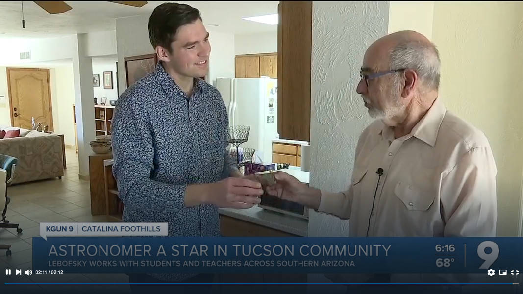 KGUN reporter Ryan Fish talked with Lebofsky about his scientific career, as well as his efforts to teach kids, as well as teachers, hands-on learning about planetary science.