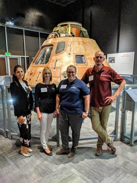 PSI Research Scientist Ryan Watkins celebrated the 50th Anniversary of the Apollo 11 landing at the Museum of Flight’s Lunar Block Party in Seattle, Washington. This event was held alongside the Smithsonian’s traveling Destination: Moon exhibit, which highlights the beginning of the Apollo program and features the Apollo 11 Command Module, Columbia. As part of the Lunar Block Party event, Ryan and other Lunar Reconnaissance Orbiter (LRO) scientists gave mini-talks on science being done by LRO and ran a booth featuring lunar images, data, and activities. Ryan’s talk focused on selecting future landing sites for a return to the Moon. PSI provided a 3D model of the Apollo 11 landing site and several interesting images and activities for the event, which attracted about 10,000 people over three days.
