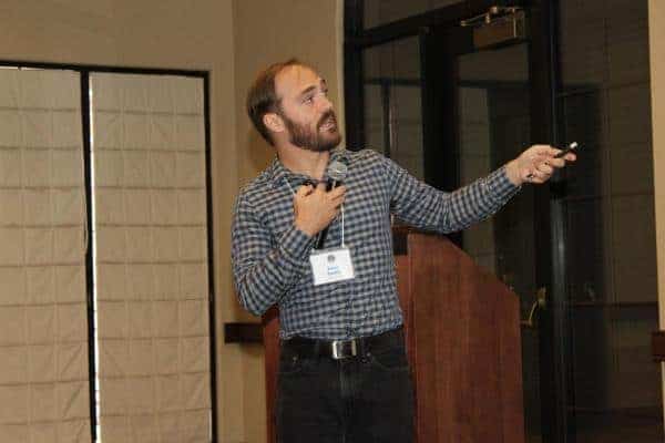 Above, PSI Director Mark Sykes tells the assembled scientists and administrative staff about the Institute’s continued growth.
