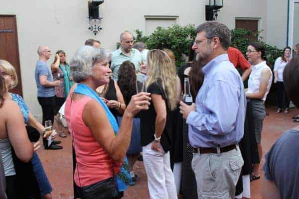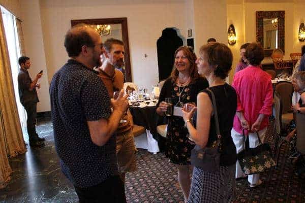 Below, David Grinspoon, Joe Spitale, Maria Banks and Sarah Sutton chat at the reception prior to dinner at the Arizona Inn.