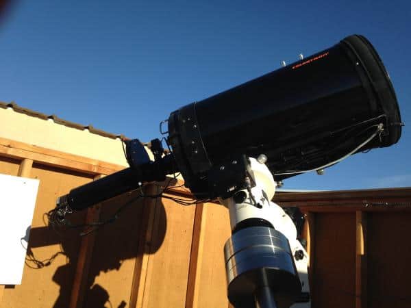 IoIO consists of a 14-inch (35 cm) Celestron Schmidt-Cassegrain telescope feeding a custom-built coronagraph. An Astro-Physics 1100 mount, 80mm offset guide scope, and associated software enable the system to acquire and guide on Solar System targets robotically. The telescope is hosted at the San Pedro Observatory in Benson, Arizona, 40 miles east of Tucson.