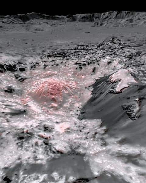 Some of the evidence for recent liquids in Occator Crater comes from the bright deposits, but other clues come from an assortment of interesting conical hills. These features are reminiscent of terrestrial pingos – small ice hills formed by frozen pressurized groundwater in Earth’s polar regions. Similar features have also been spotted on Mars, but their observation on Ceres is the first evidence that frost heaving may occur on a dwarf planet. Evidence for shallow processes like frost heave, combined with evidence for deep interior activity, will make Ceres an interesting area of study for years to come.