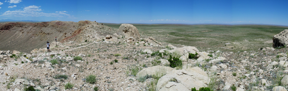 The large block in the photo to the left is known as “Whale Rock”. It was excavated from the interior of Barringer Crater during its formation. Note the person for scale.