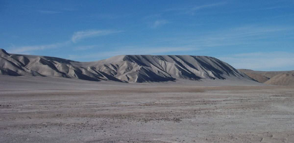 We are now in the Haughton River Valley. The gray hills that you see above are made of impact melt breccias, and they run along the west side of the valley for the next 12 kilometers. Presently, the thickest remnants (up to 120 meters) of melt breccia in the entire structure are found at this location.