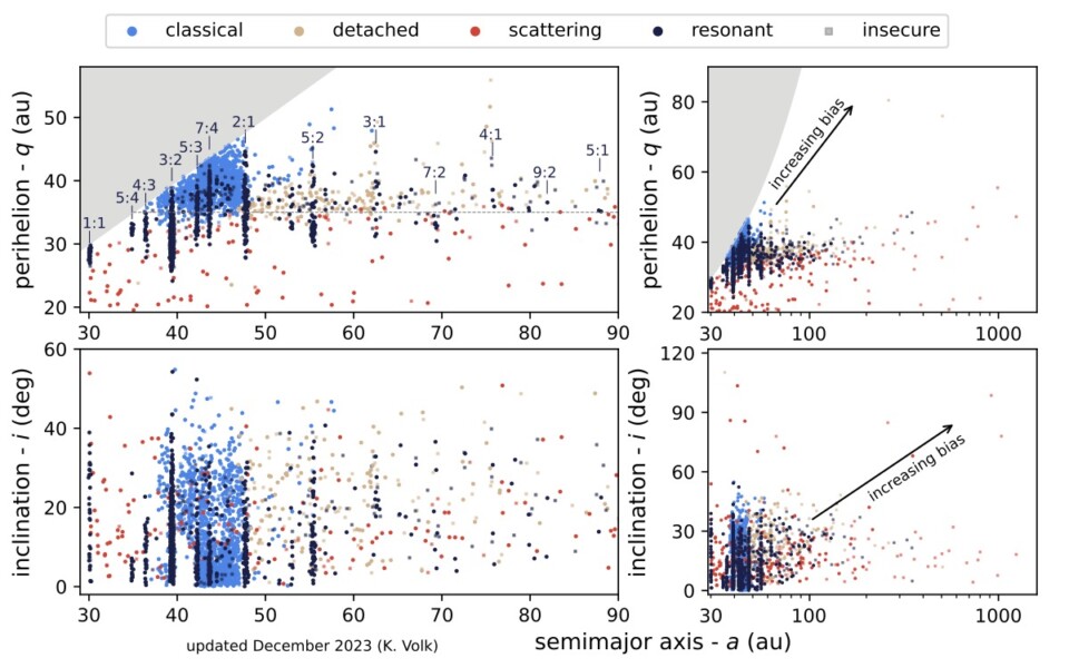 Dr. Volk's current research focuses on using small body populations to understand the history of the solar system. This includes combining observational and theoretical studies to examine the current orbital dynamics of small body populations (including trans-Neptunian objects, Centaurs, and comets) and modeling the dynamical histories of the giant planets to make observationally testable predictions about different planet migration scenarios. Dr. Volk contributed to the Outer Solar System Origins Survey, which discovered more than 800 trans-Neptunian objects, and she is active in the Solar System Science Collaboration for the Vera Rubin Observatory's Legacy Survey of Space and Time (LSST). One of her current projects is developing software tools to characterize the orbital dynamics of the many expected new small body discoveries from LSST. She also works on the dynamics of exoplanet systems, investigating the triggers of dynamical instabilities in closely packed planetary systems.